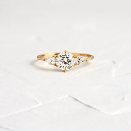 18K Solid Gold Round Moissanite Diamond Engagement Ring