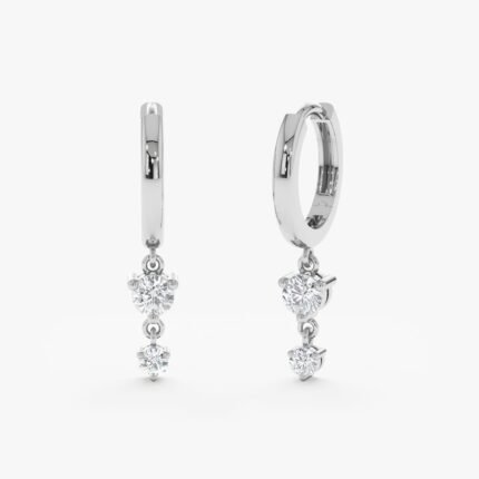 Double Diamond Drop Huggies in Solid Gold