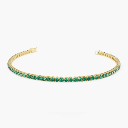 Elegant 14K solid gold tennis bracelet for women featuring prong-set emeralds—crafted for timeless sophistication and lush green brilliance.