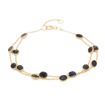 Elegant 14K solid gold bracelet adorned with deep blue sapphires. A timeless accessory that adds richness and refined beauty to any look.