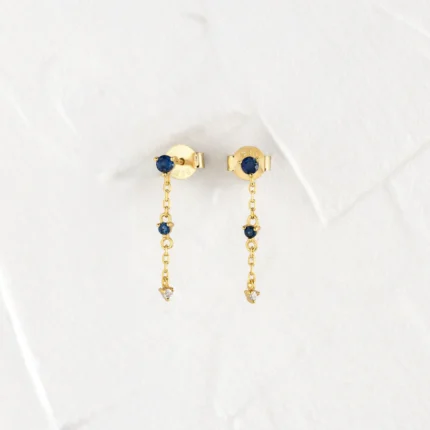 18k Solid Gold Sapphire Trio Earring