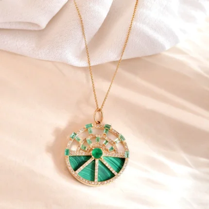 Elegant 18k solid gold charm featuring a rich emerald, malachite inlay, and sparkling diamonds—perfect for meaningful and luxe layering.