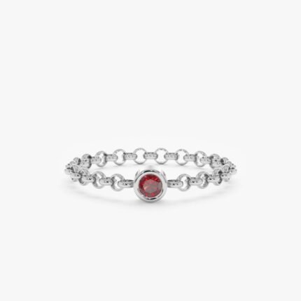 14K Solid Gold Garnet Chain Ring