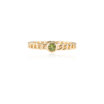 Fresh and modern, this 14K solid gold link chain ring features a vibrant peridot—perfect for stacking or adding a pop of color to any look.
