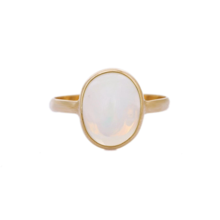 Elegant 18k solid gold solitaire ring featuring a luminous opal—crafted for timeless charm, ethereal beauty, and graceful everyday style.