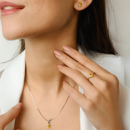 Stunning 18k solid gold combo jewelry set with yellow sapphires, offering a bright, sophisticated design for a truly elegant look.
