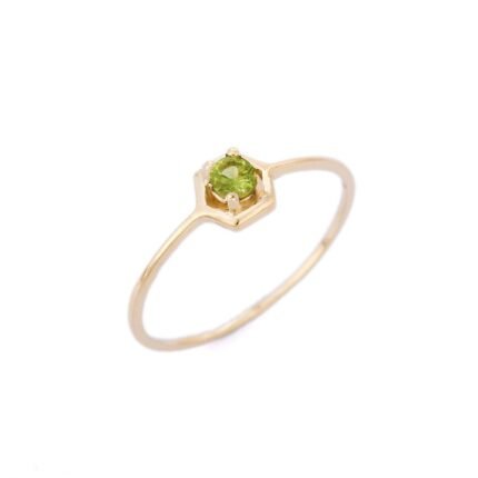 14K Solid Gold Hexagon Peridot Ring