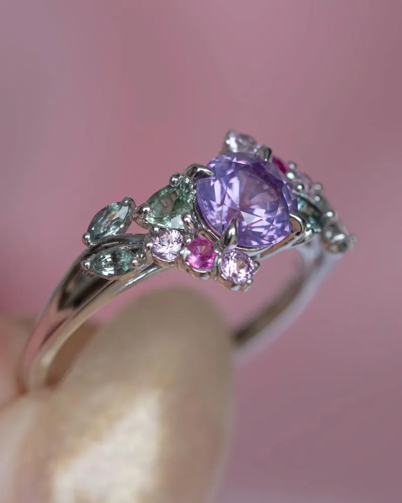 18K Solid Gold Enchanted Garden Purple Sapphire Ring