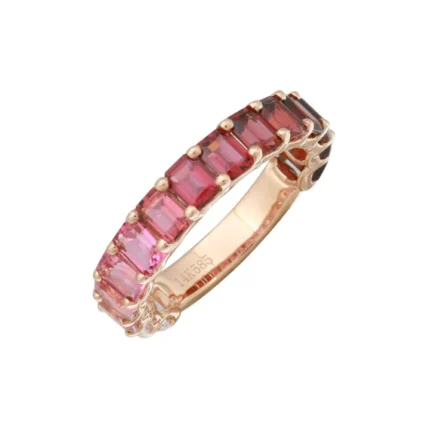 18K Solid Gold Pink Ombre Emerald Cut Topaz Eternity Band