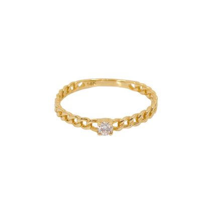 The Mini Diamond Chain Ring in 14K gold features 0.09 cts of lab-grown diamonds with VS1 clarity and F color. This delicate ring offers a touch of elegance with its minimalist design and is beautifully presented in a Karat Store Jewelry box, perfect for gifting or personal indulgence.
