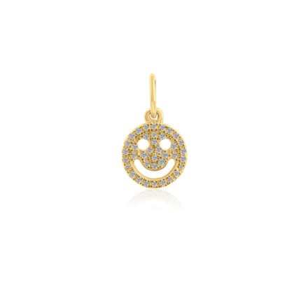 14K Gold Moissanite Diamond Happy Face Charm