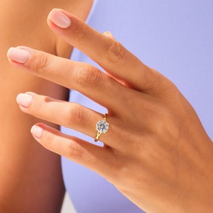 14K Solid Gold 1 Carat Brilliant Round Moissanite 6 – Prong Engagement Ring