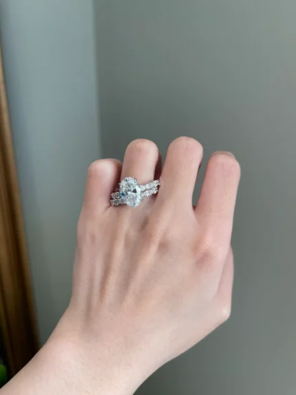 This 5 carat oval cut moissanite ring set in gold radiates luxury and sparkle—ideal for making a stunning statement or marking a special moment in love.