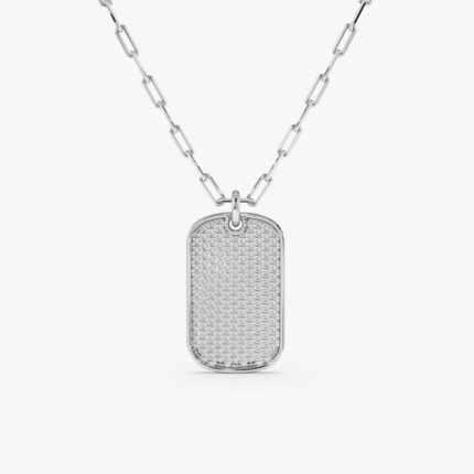 Diamond Tag Necklace with Paperclip Chain