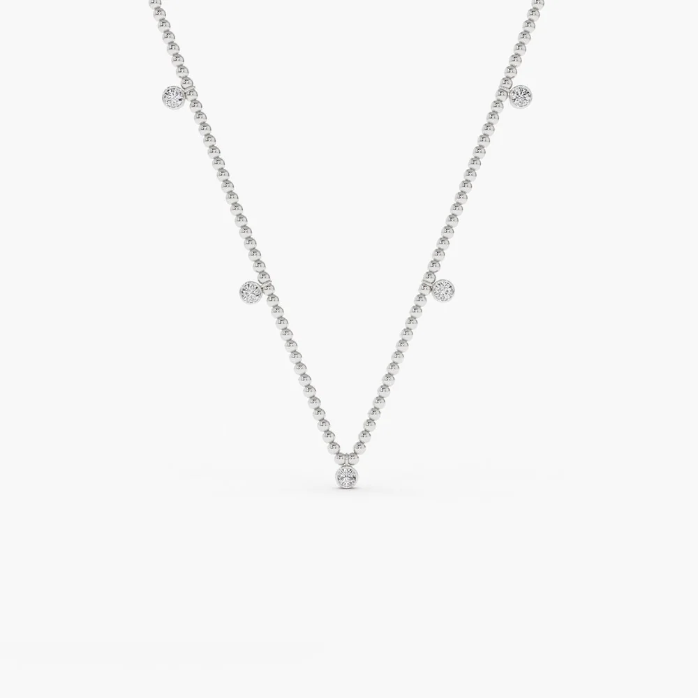 14k 2MM Bead Necklace with Dangling Bezel Setting Natural Diamonds