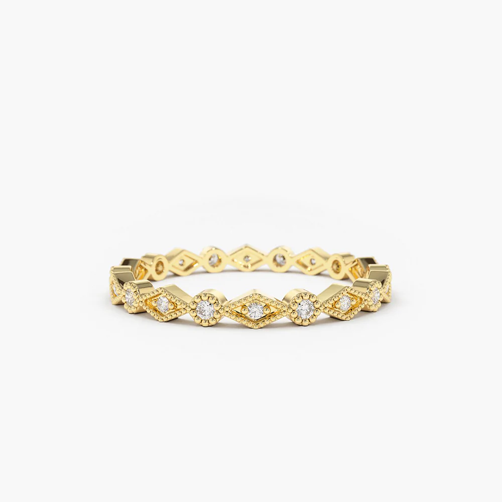 “Elegant 14K Gold Art Deco Diamond Eternity Band – a beautiful design with diamonds set in an art deco pattern, perfect for a sophisticated, radiant wedding band.”