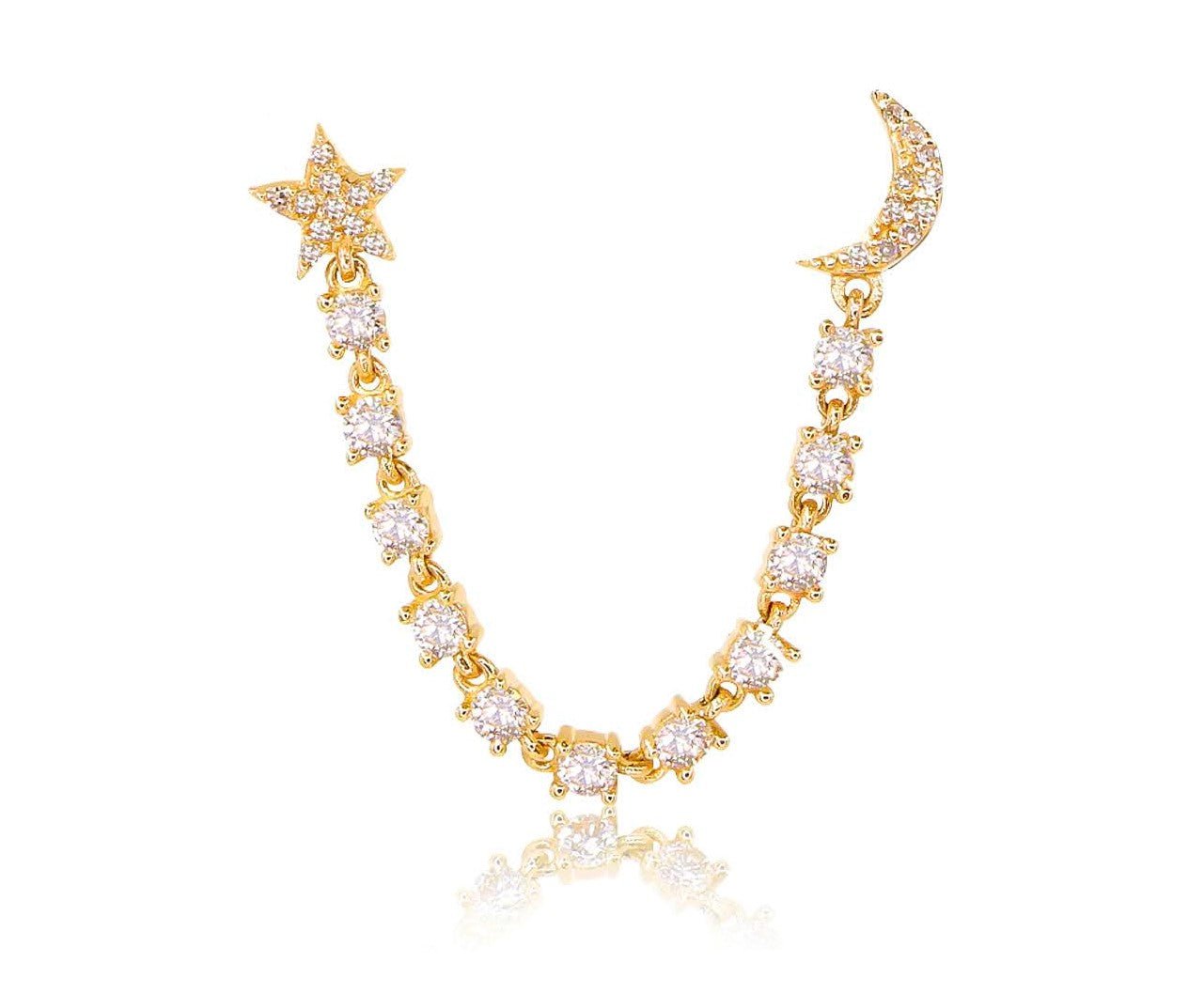 14K Gold Lab Grown Diamond Moon Star Connecting Earring