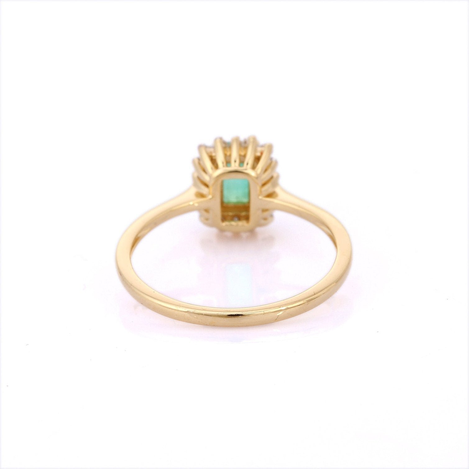 Experience the exquisite allure of our 14K Solid Gold Emerald Diamond Ring, a piece that beautifully combines the richness of emerald with the sparkle of diamonds. This elegant ring is crafted from high-quality 14K gold and features a single cushion-shaped emerald, measuring 6×4 mm and weighing 0.65 carats. The emerald’s deep, vibrant green hue is complemented by a halo of 18 diamonds, totaling 0.18 carats, which encircle the gemstone and enhance its brilliance. The diamonds are set in a delicate prong setting that allows for maximum light exposure, making the emerald appear even more radiant. With a gross weight of 2.412 grams, the ring offers a perfect balance of comfort and durability. Ideal for special occasions or as a luxurious everyday accessory, this ring’s timeless design ensures it will be a cherished addition to any jewelry collection. Whether given as a gift or worn as a personal indulgence, the 14K Solid Gold Emerald Diamond Ring embodies elegance and sophistication.