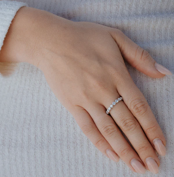 Enhance your jewelry collection with the 14K Gold Round Stackable Ring, a stunning piece designed for effortless elegance. Featuring 0.98 carats of round-cut moissanite diamonds, this ring sparkles with brilliance, making it perfect for stacking or wearing as a statement piece.