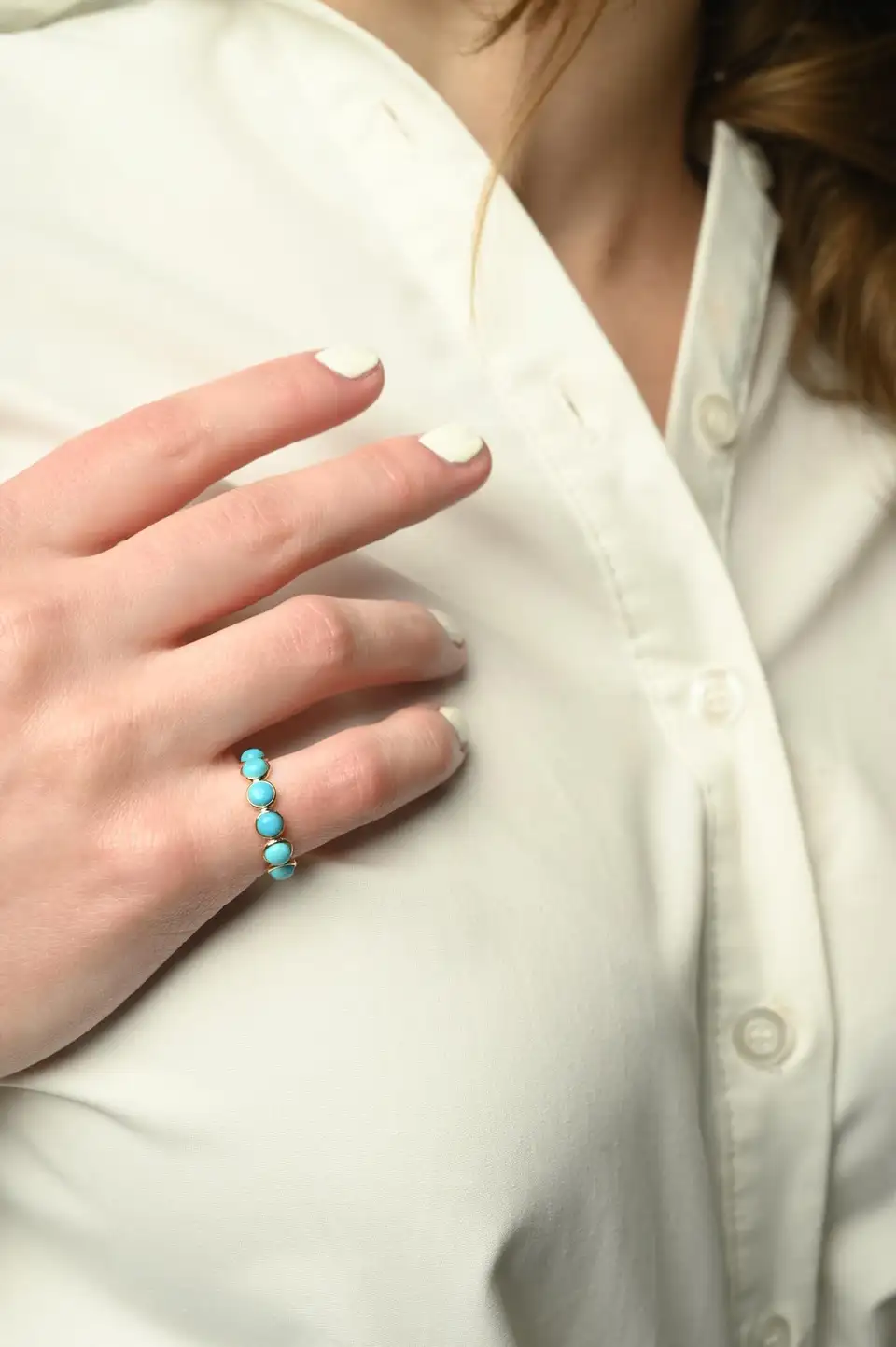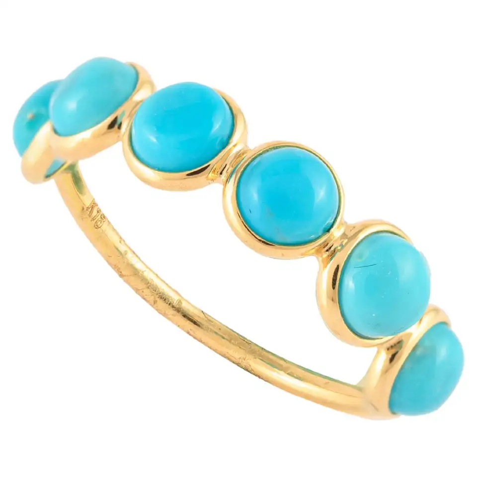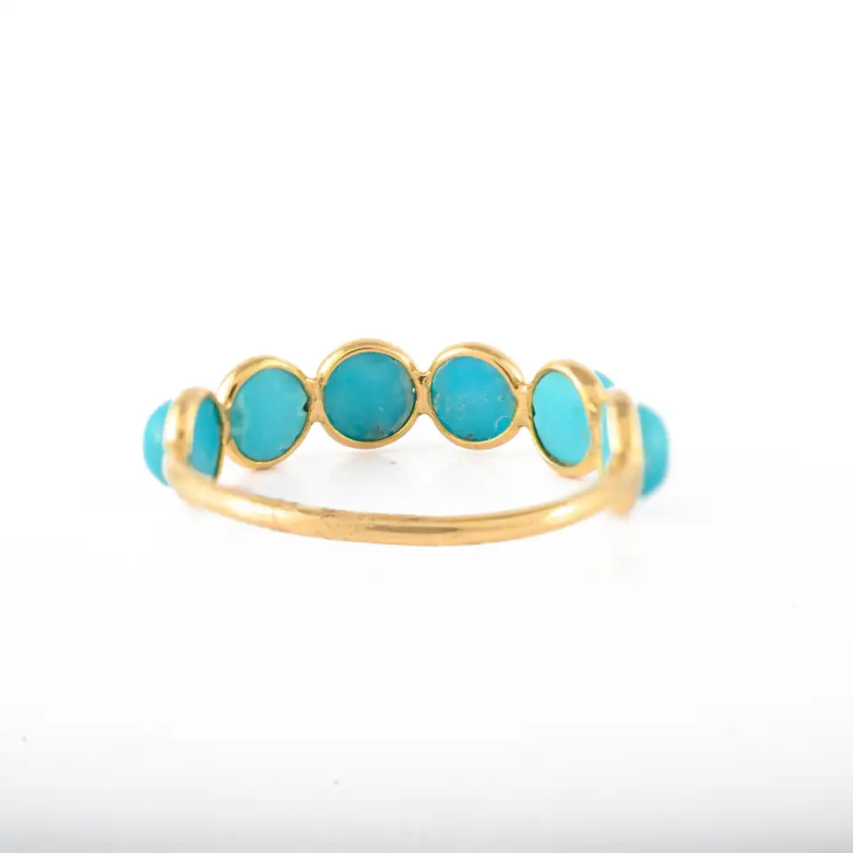 Chic 14K solid gold half eternity band featuring round turquoise stones—crafted for vibrant charm, natural beauty, and everyday elegance.