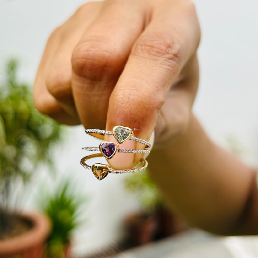 Charming and radiant, this 14K solid gold ring features a heart-shaped citrine—perfect for expressing love with a warm, golden glow.
