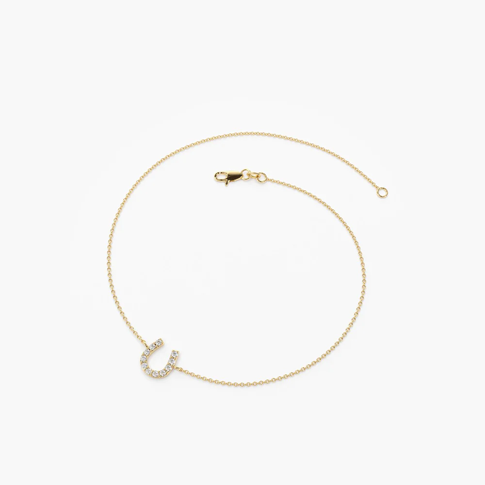 14k Solid Gold Mini Moissanite Diamond Horseshoe Bracelet