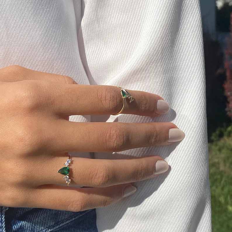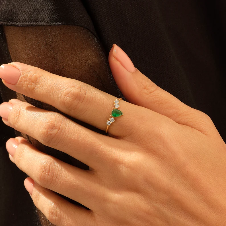 Celebrate a milestone with this 14K Solid Gold Pear Emerald Anniversary Ring, that is a stunning symbol of elegance and love. Made out of premium 14K gold, this beautiful ring features a vibrant Zambian emerald in a pear shape, adding a touch of sophistication to your jewelry collection.