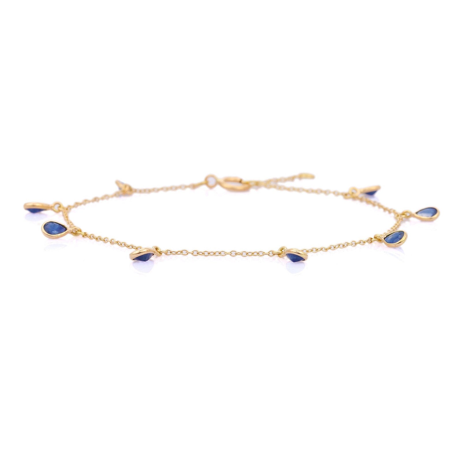 The solid yellow gold setting complements the blue sapphire beautifully, adding a warm and luxurious contrast. Whether worn alone for a touch of sophistication or paired with other gold jewelry for a layered look, this bracelet exudes understated elegance and charm.