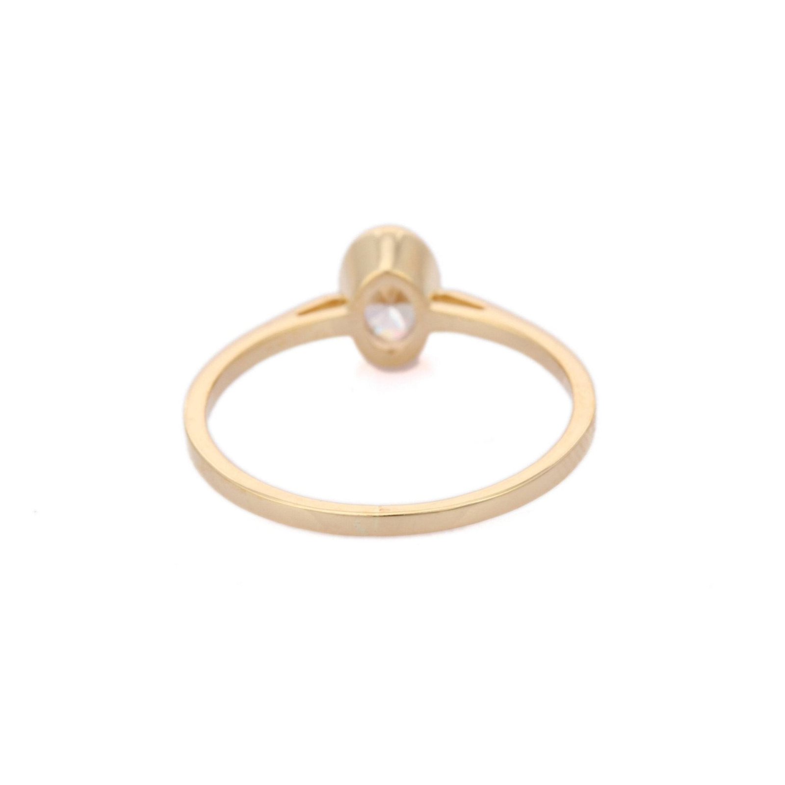 The cubic zirconia is set in a bezel setting, ensuring both security and a sleek, modern look. The 14K Solid Gold band complements the stone beautifully, providing a warm and luxurious backdrop that enhances the gemstone’s radiant brilliance.