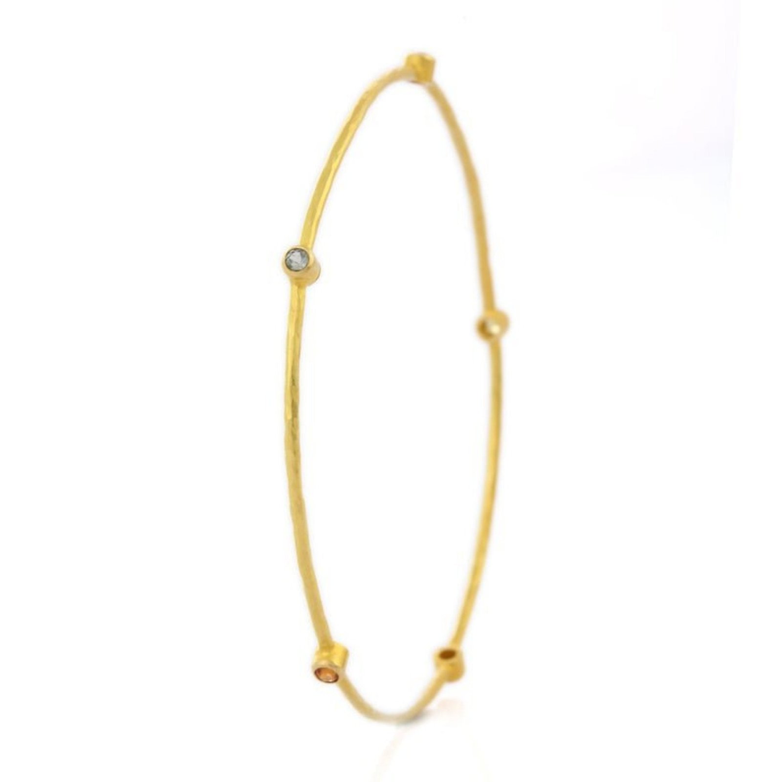 I love how playful yet elegant this bangle is. The gold setting enhances the beauty of the gemstones.