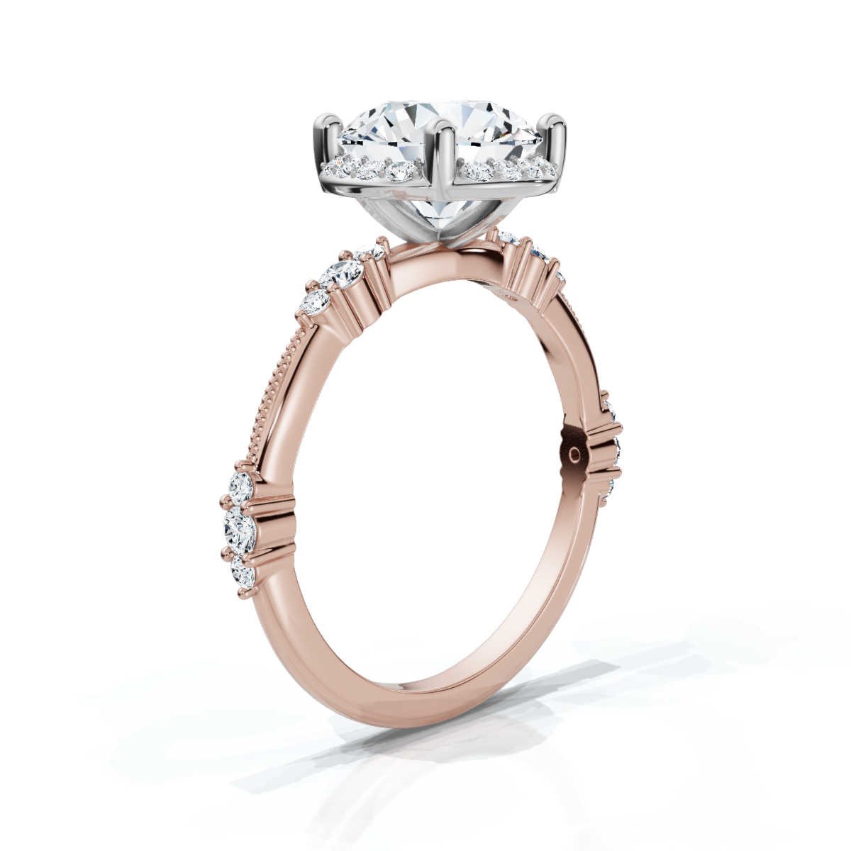 Round Cut 1 ct Lab Grown Diamond Pave Setting Engagement Ring