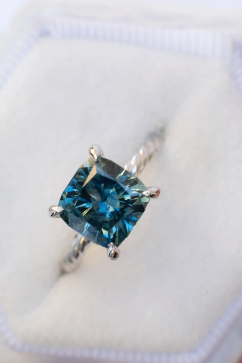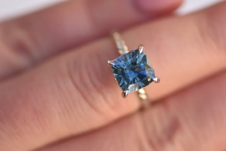 Make a bold statement with our 18k Solid Gold 3 ct Montana Sapphire Solitaire Engagement Ring a stunning blend of natural beauty and timeless elegance. Featuring a breathtaking 3-3.3 carat natural Montana sapphire, this solitaire ring showcases the mesmerizing blue-green hues unique to sapphires ethically sourced from Montana, USA. Each sapphire is one of a kind, ensuring a ring as unique as your love story.