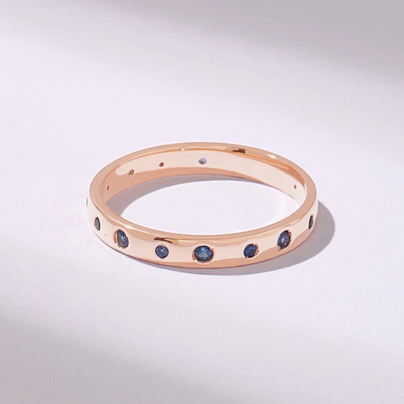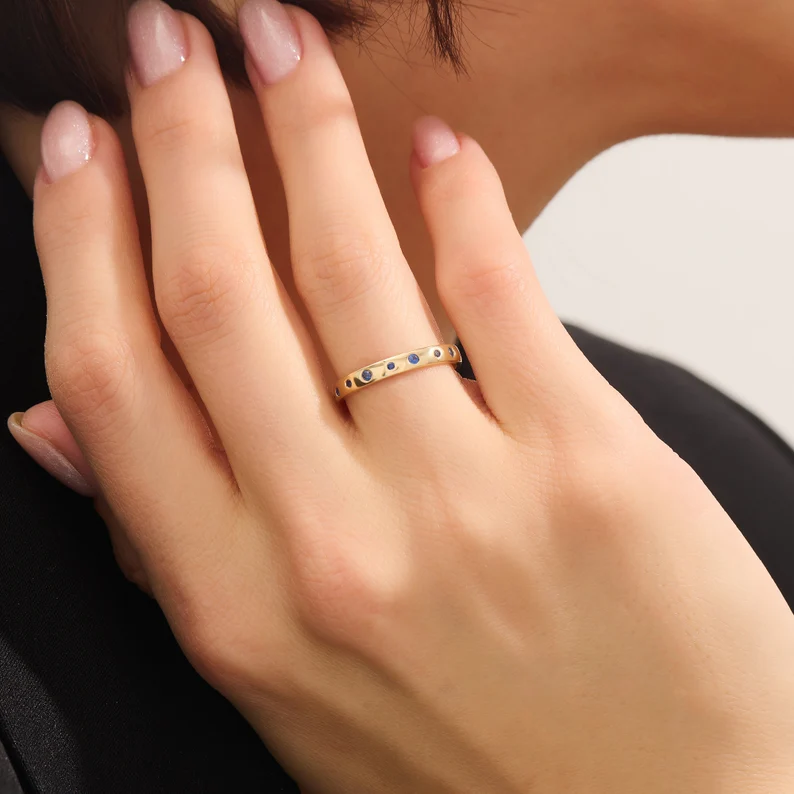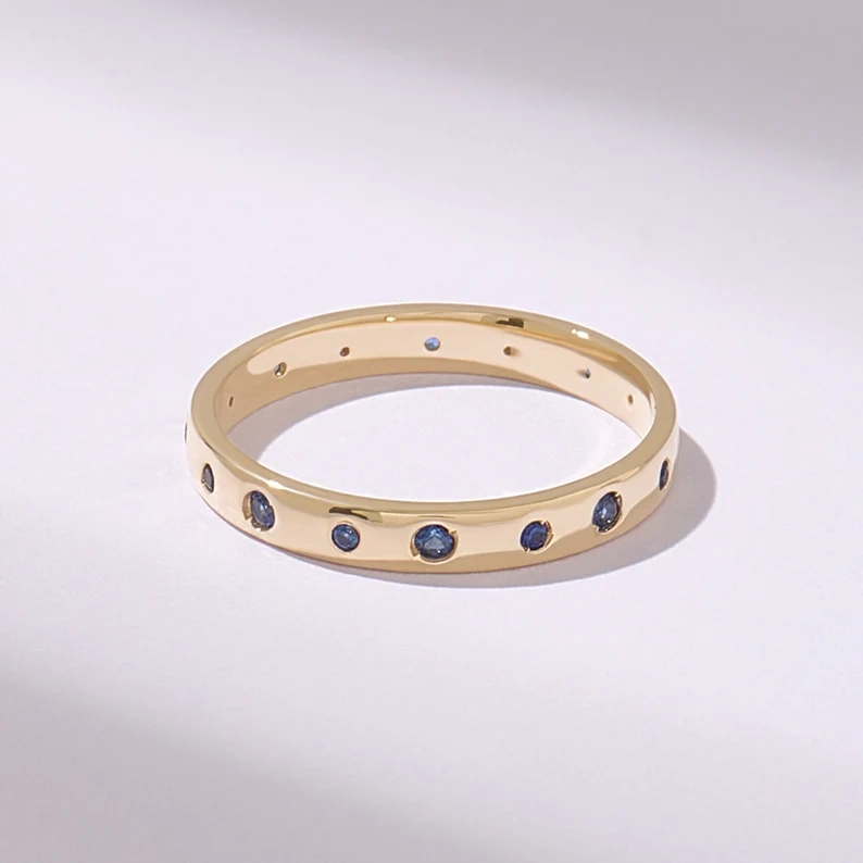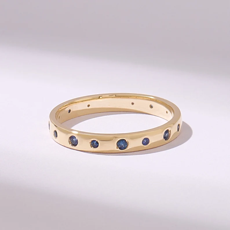 18K Solid Gold Alternating Sapphire Wedding Band