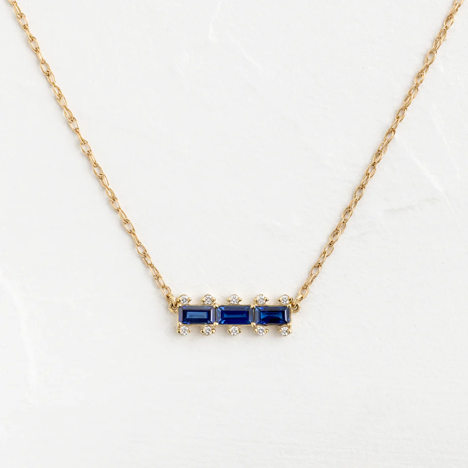 18k Solid Gold Blue Sapphire Bookend Necklace