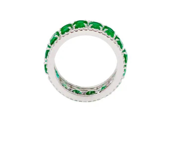 18K Solid Gold Emerald and Diamond Eternity Band