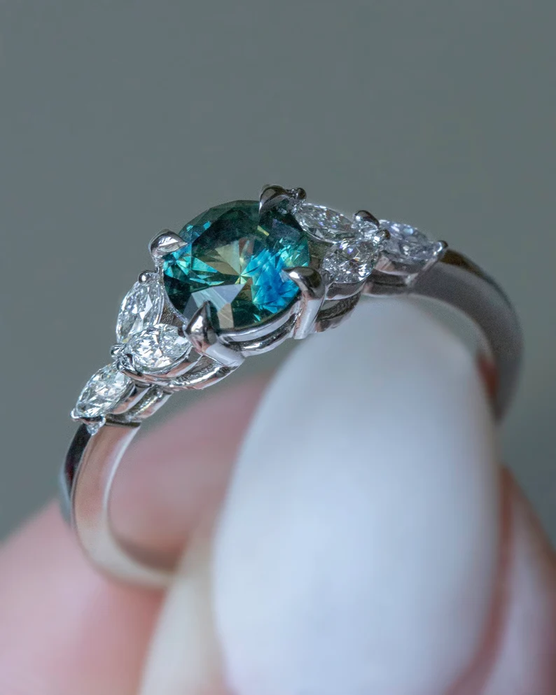 18K Solid Gold Green Teal Montana Sapphire Ring