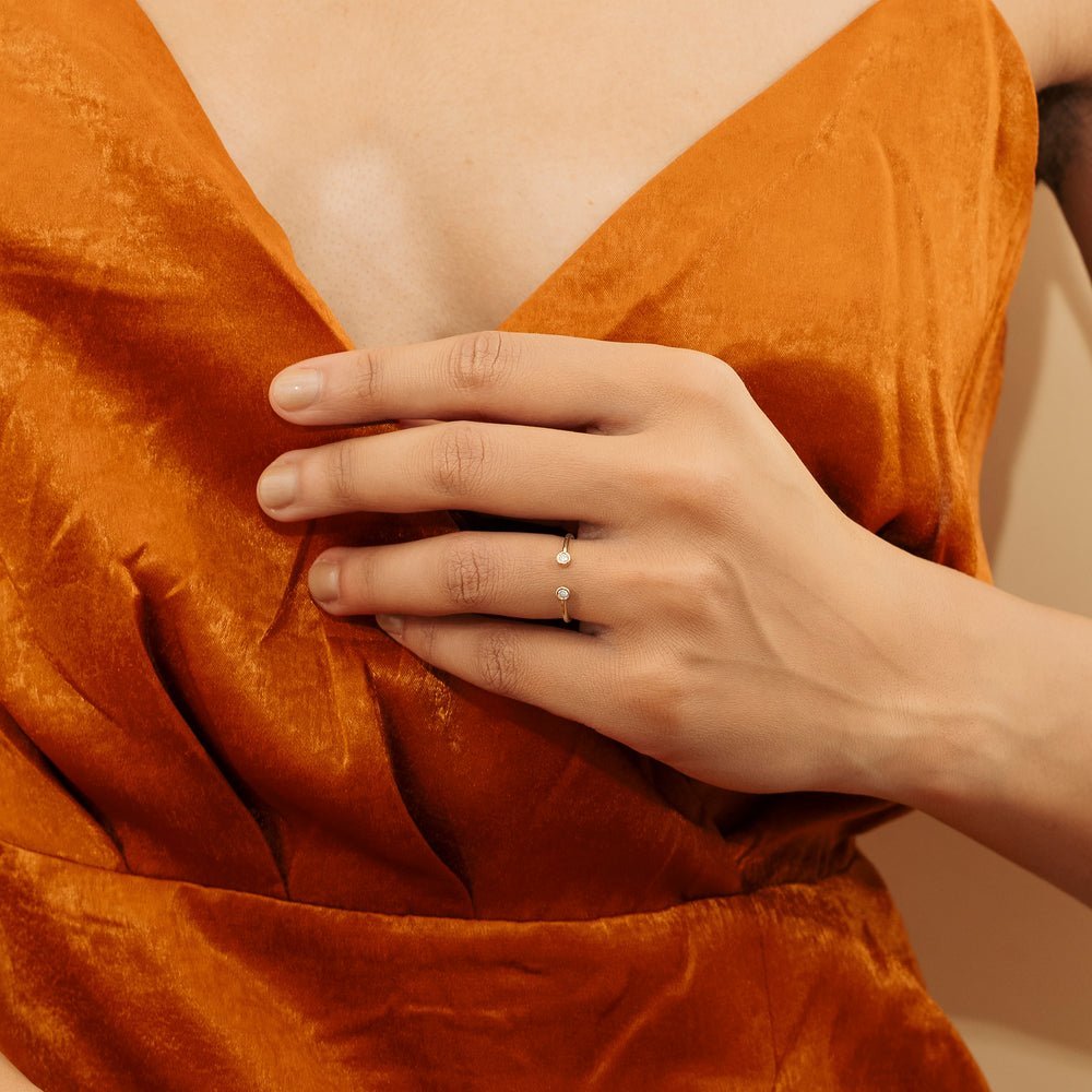 Dainty 18k gold open cuff ring with bezel-set natural diamonds (0.06ct). A minimalist statement piece for everyday luxury.