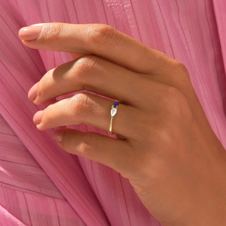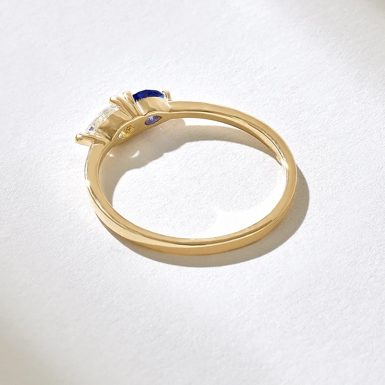 Romantic 18k solid gold Toi et Moi ring featuring a natural diamond and deep blue sapphire—symbolizing love, unity, and timeless elegance.
