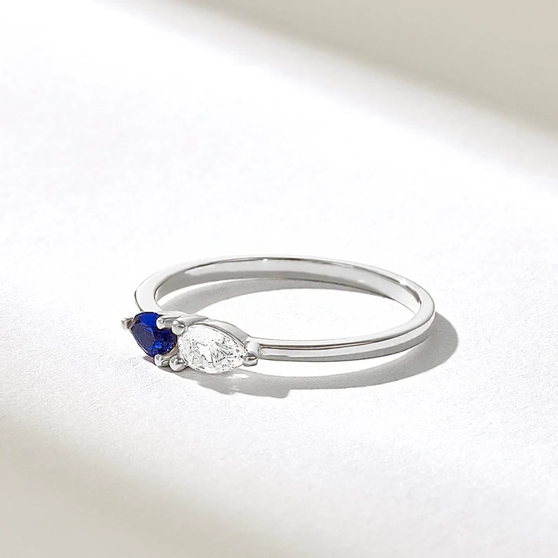 At the heart of the design is a vivid natural sapphire totaling 0.18 carats, set alongside 0.25 carats of natural diamonds with GH color and VS-SI clarity. This captivating contrast between the deep sapphire hue and the radiant brilliance of diamonds embodies the union of individuality and togetherness.