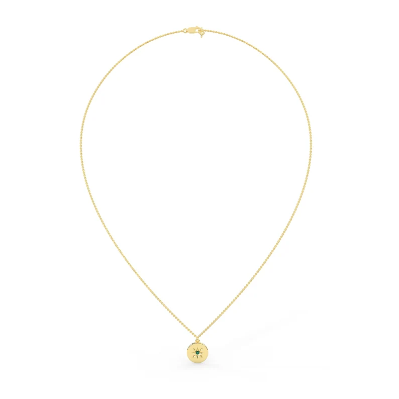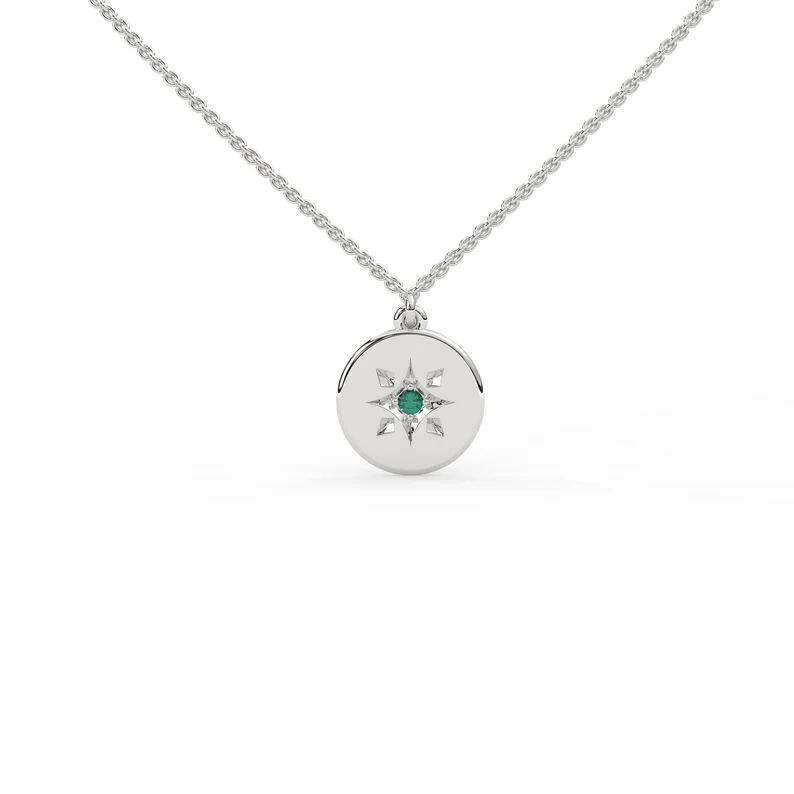 A stunning 18k solid gold necklace featuring a natural emerald set in a North Star design, offering a meaningful and radiant addition to any collection.