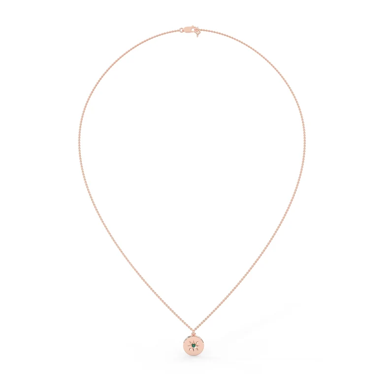 Crafted from premium 18k solid gold, available in yellow, white, and rose gold, this necklace offers both durability and sophistication. With an approximate gold weight of 4 grams, it is lightweight yet sturdy, ensuring comfortable wear. The finely detailed North Star design, combined with the mesmerizing emerald, makes it a versatile piece perfect for daily wear or special occasions.