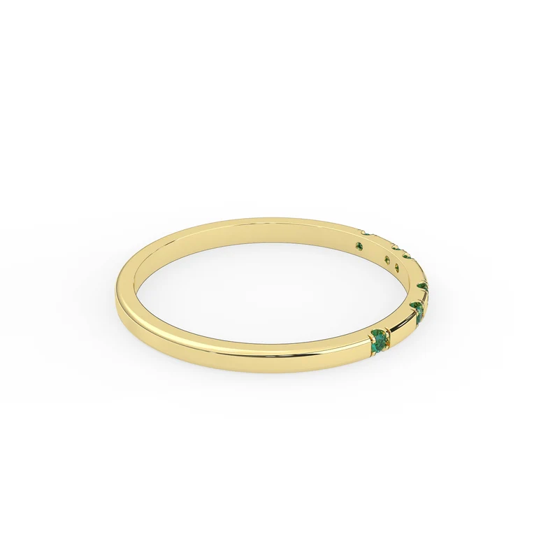 A timeless 18k solid gold wedding band featuring natural emeralds, offering a vibrant and elegant symbol of everlasting love and commitment.