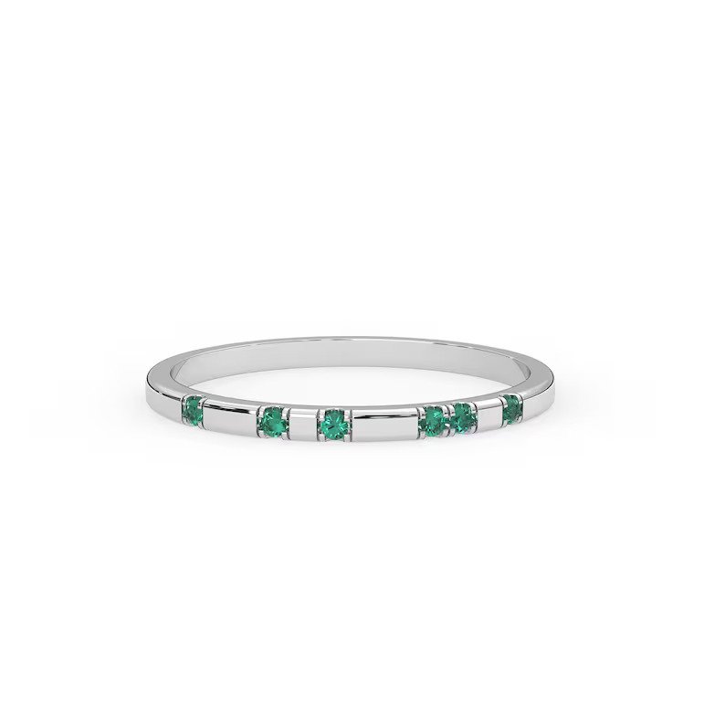Crafted from premium 18k solid gold, available in yellow, white, and rose gold, this band offers both durability and sophistication. The smooth, polished finish enhances the brilliance of the emeralds, making it ideal for stacking, pairing with an engagement ring, or wearing alone as an elegant statement.