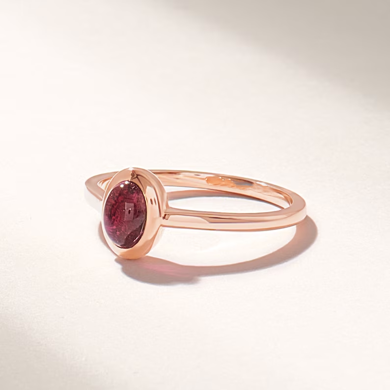 The tourmaline is prong- or bezel-set (based on your chosen design) to highlight its brilliance and keep the focus on the stone’s vivid character. The warm tones of the red tourmaline beautifully contrast with the glow of solid 18k gold, available in yellow, white, or rose. Whether you choose a round, oval, or emerald cut, the gemstone is ethically sourced and hand-selected for its natural depth and clarity.
