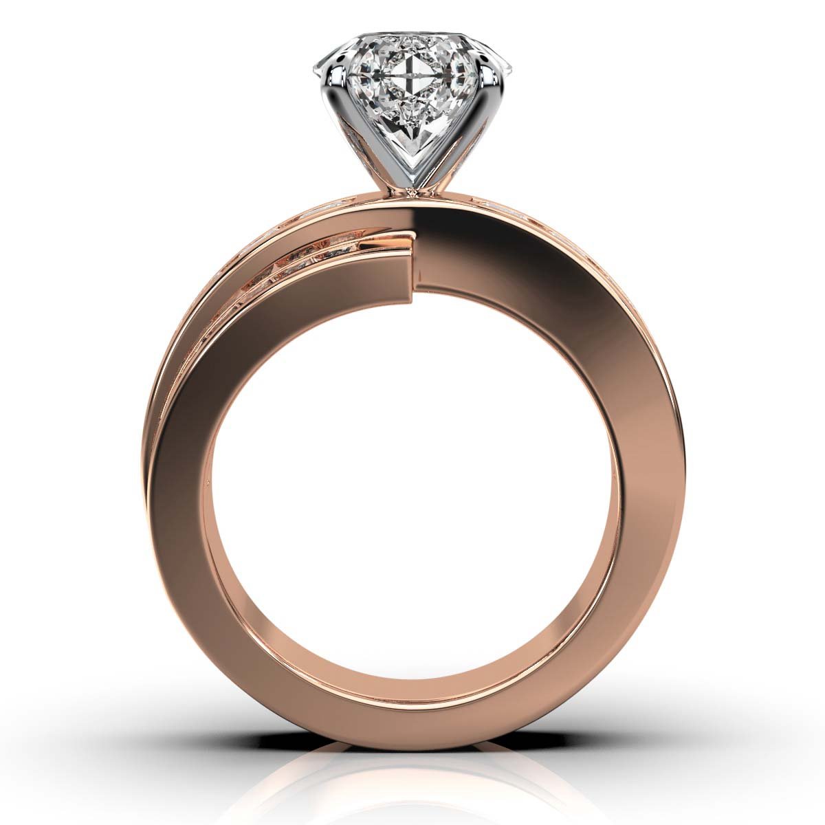 18K Solid Gold Round and Baguette Moissanite Diamond Engagement Ring