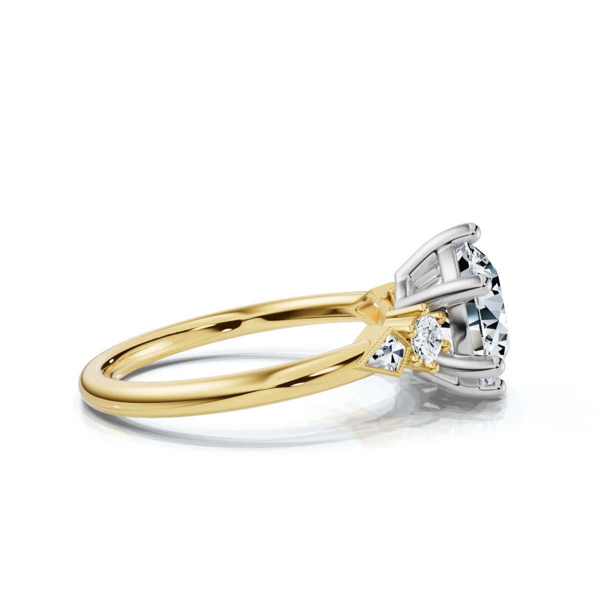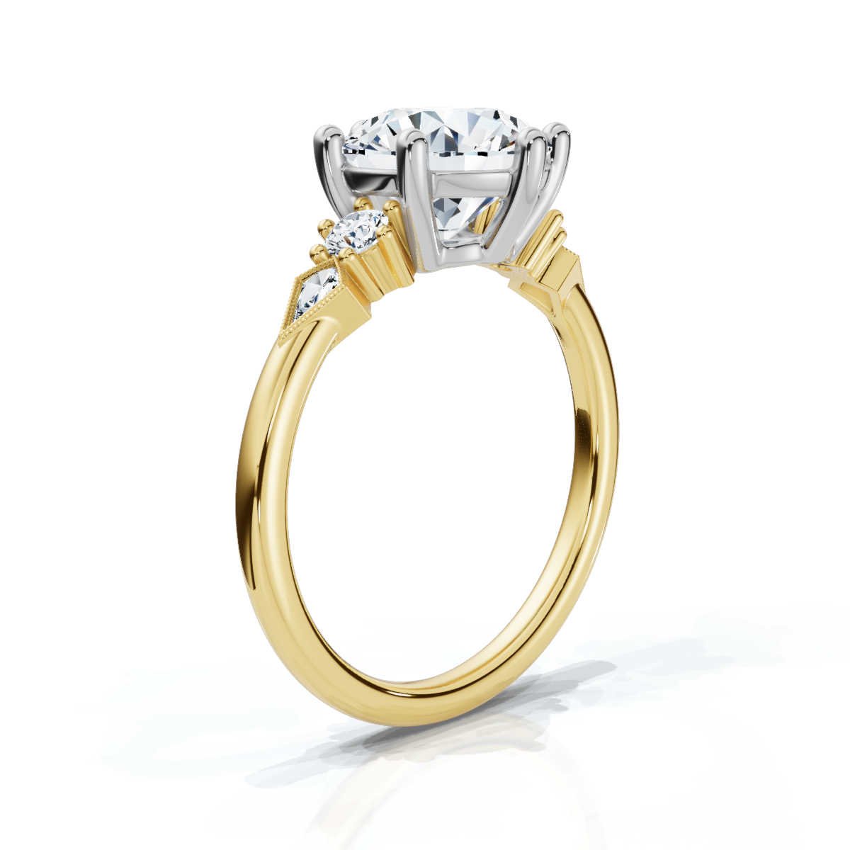 - Side Stone Shape: Round, Kite