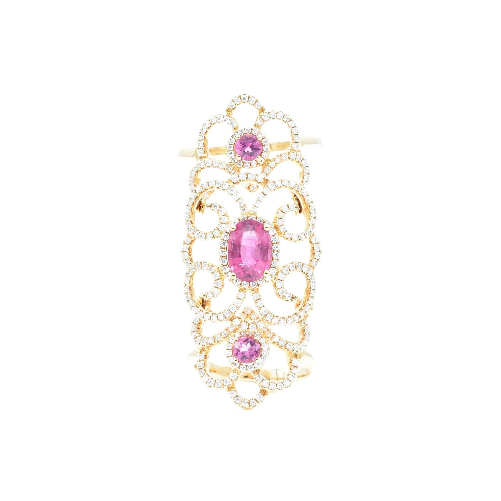 The 18k Solid Gold Rubellite and Diamond Double Ring is a fantastic piece that represents the perfect fusion of rich color and luxurious sparkle.