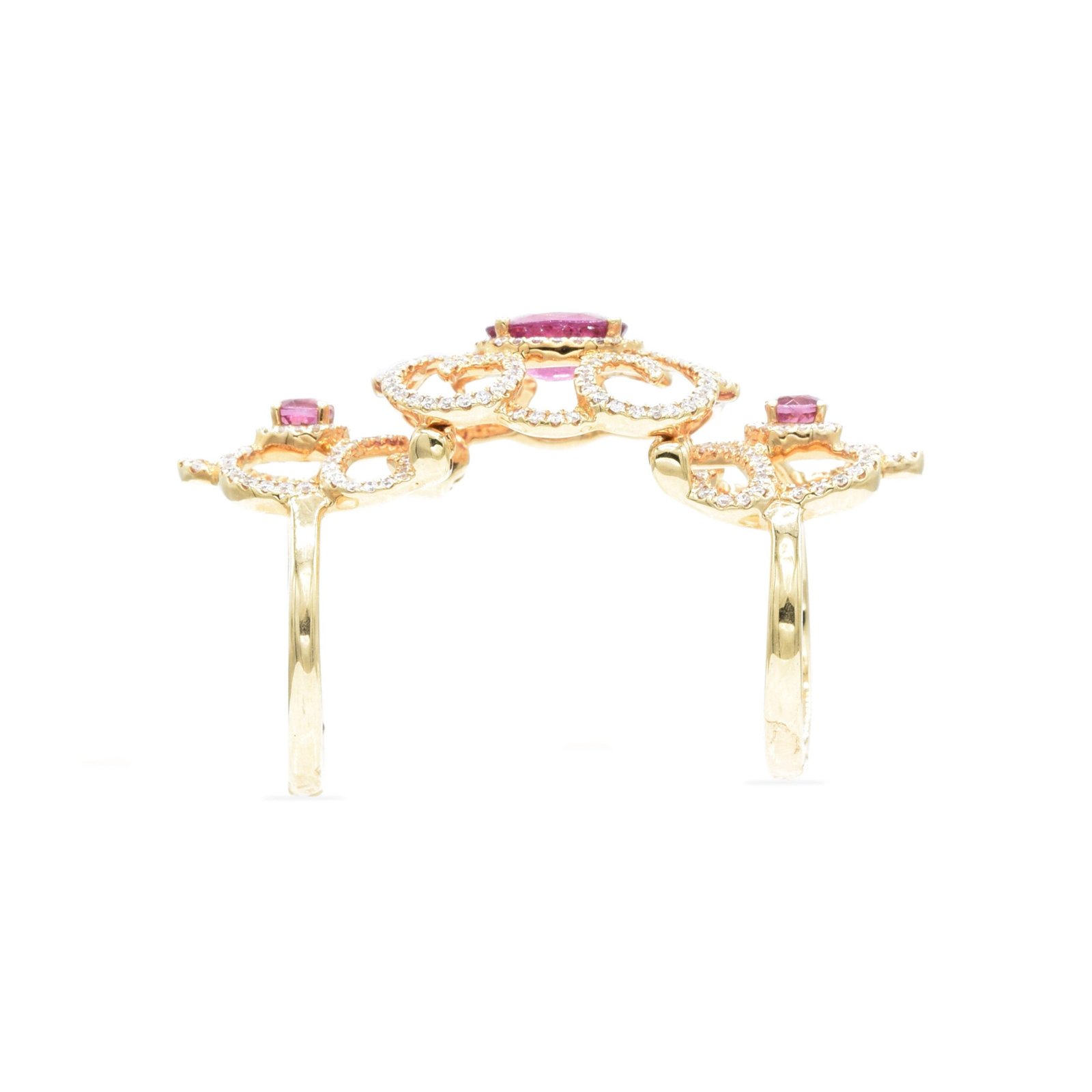 Striking 18k solid gold double ring featuring vivid rubellite and sparkling diamonds—crafted for bold elegance and modern luxury.