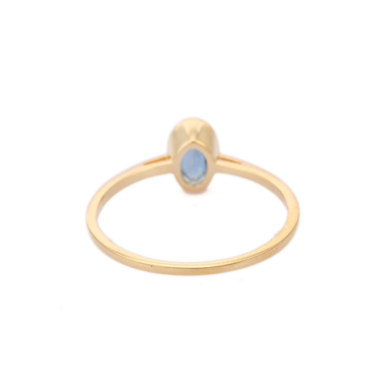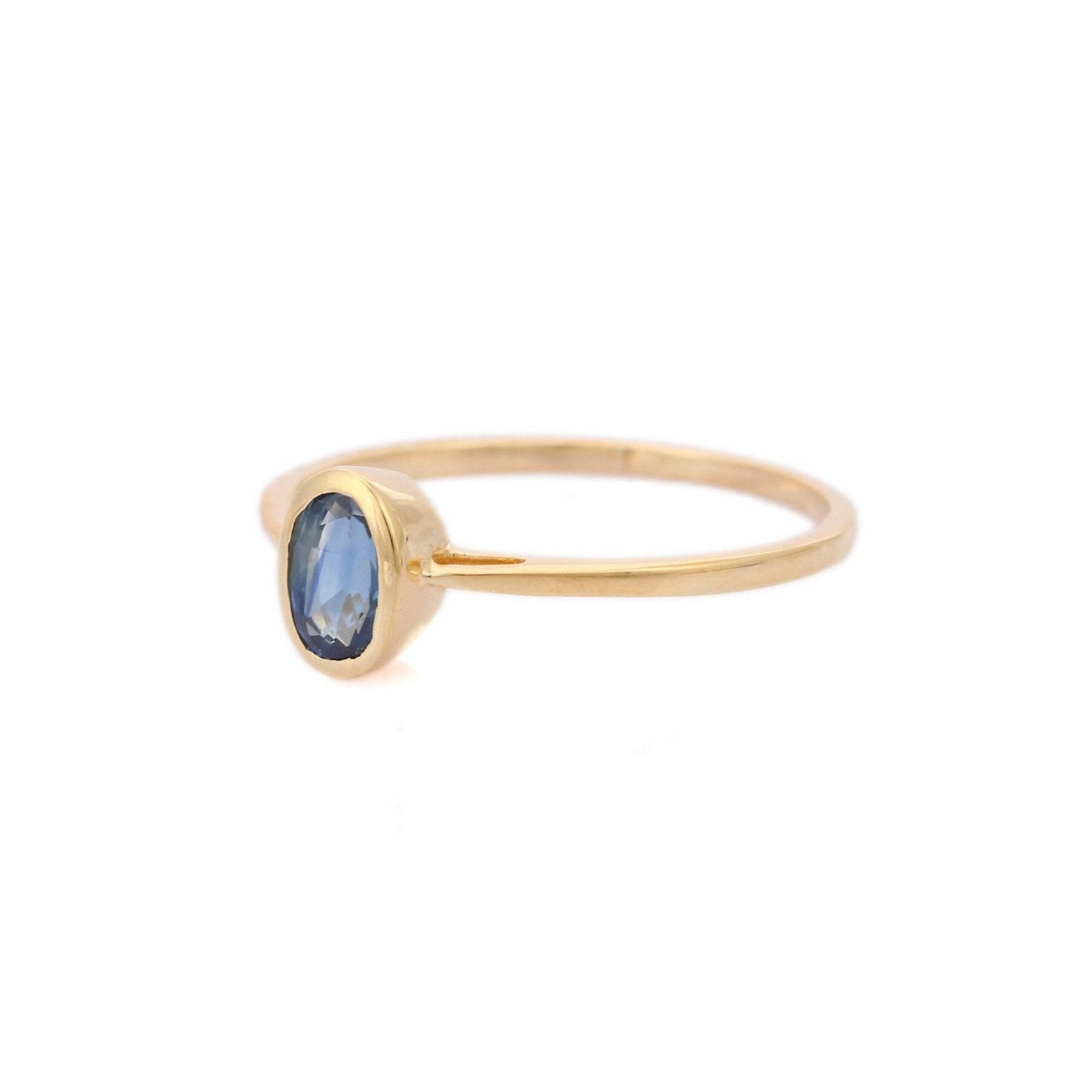 Enhance your elegance with our exquisite 18k Solid Gold Sapphire Ring. Crafted with sophistication in mind, this ring features a single oval-shaped sapphire weighing 0.60 carats, set securely in a classic bezel setting.