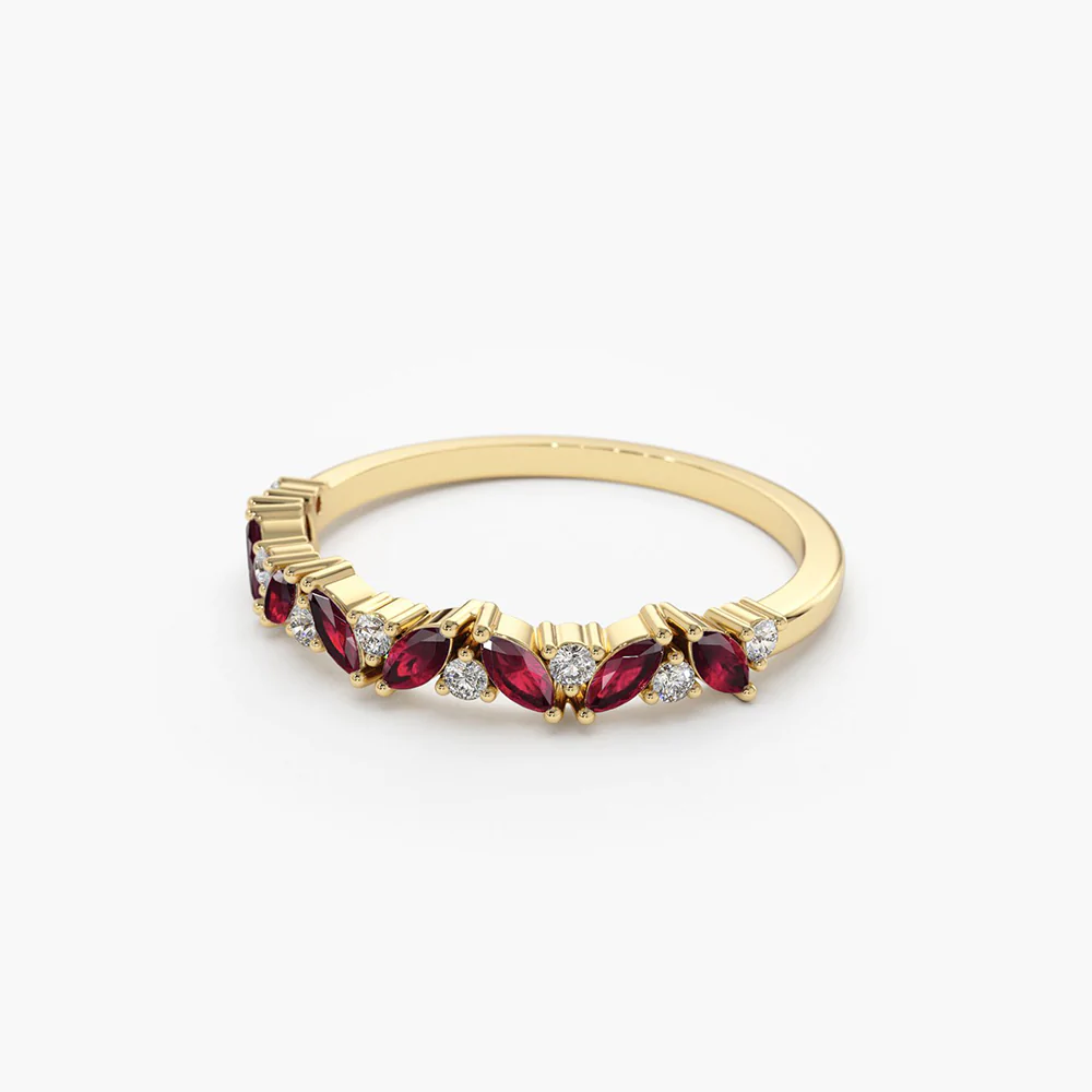 14K Solid Gold Diamond and Baguette Ruby Eternity Ring
